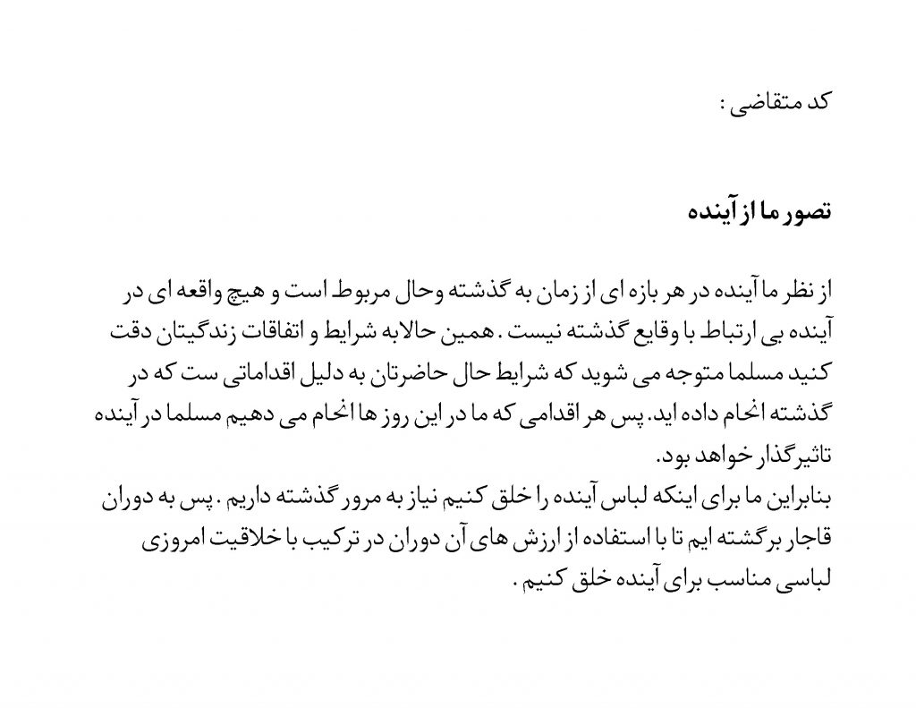هم چنین ما آینده را در گرو گذشته می دانیم و معتقد هستیم که برای ساختن آینده ی بهتر باید به اصل و ریشه ی خود بازگردیم .