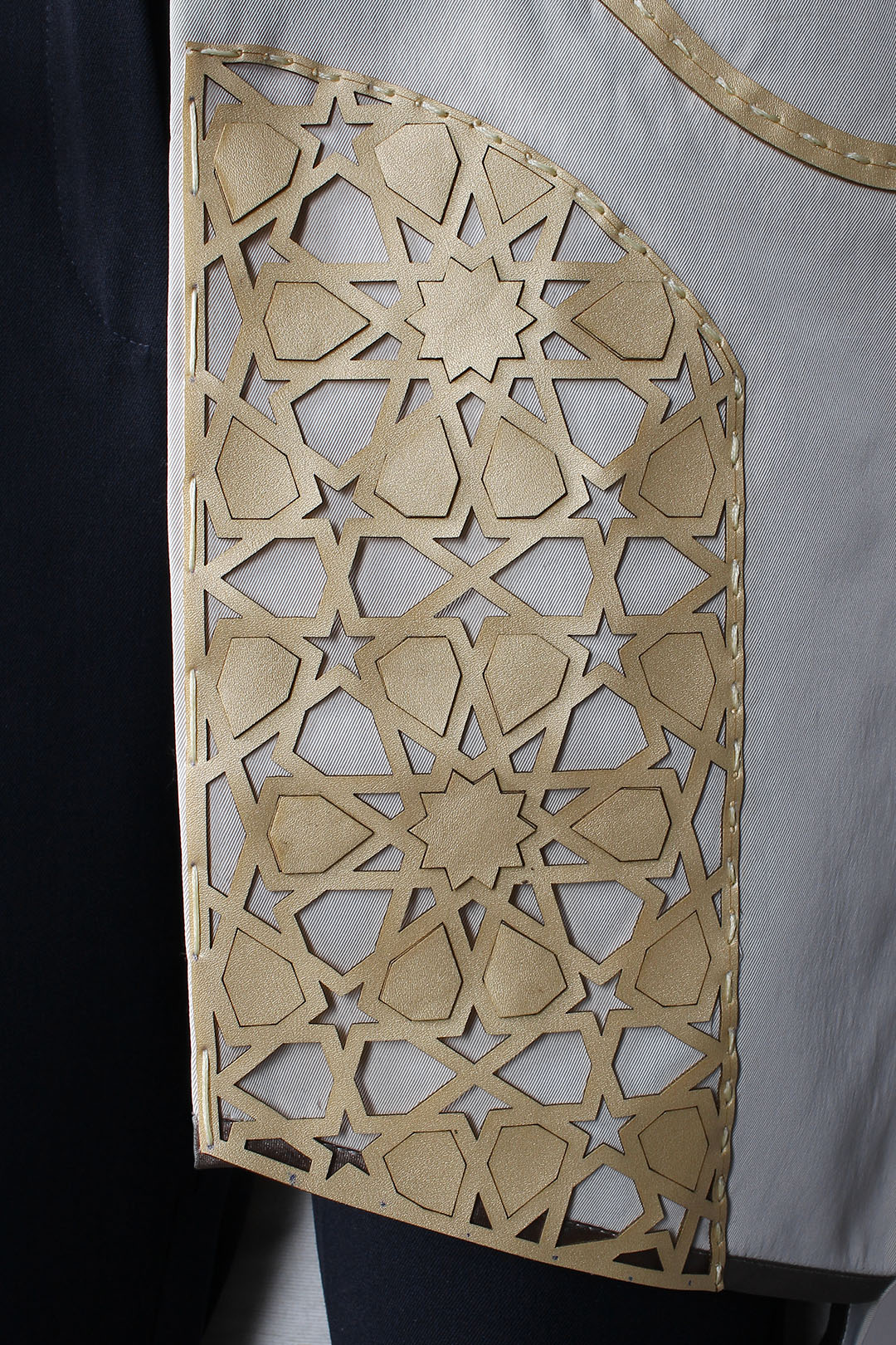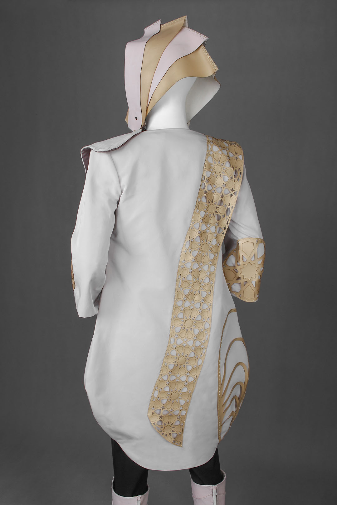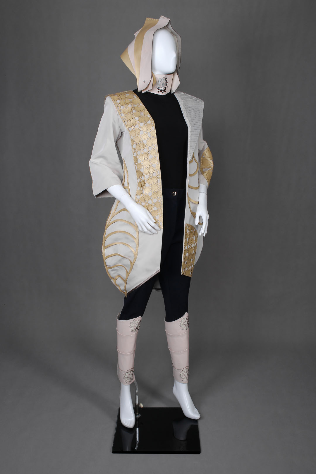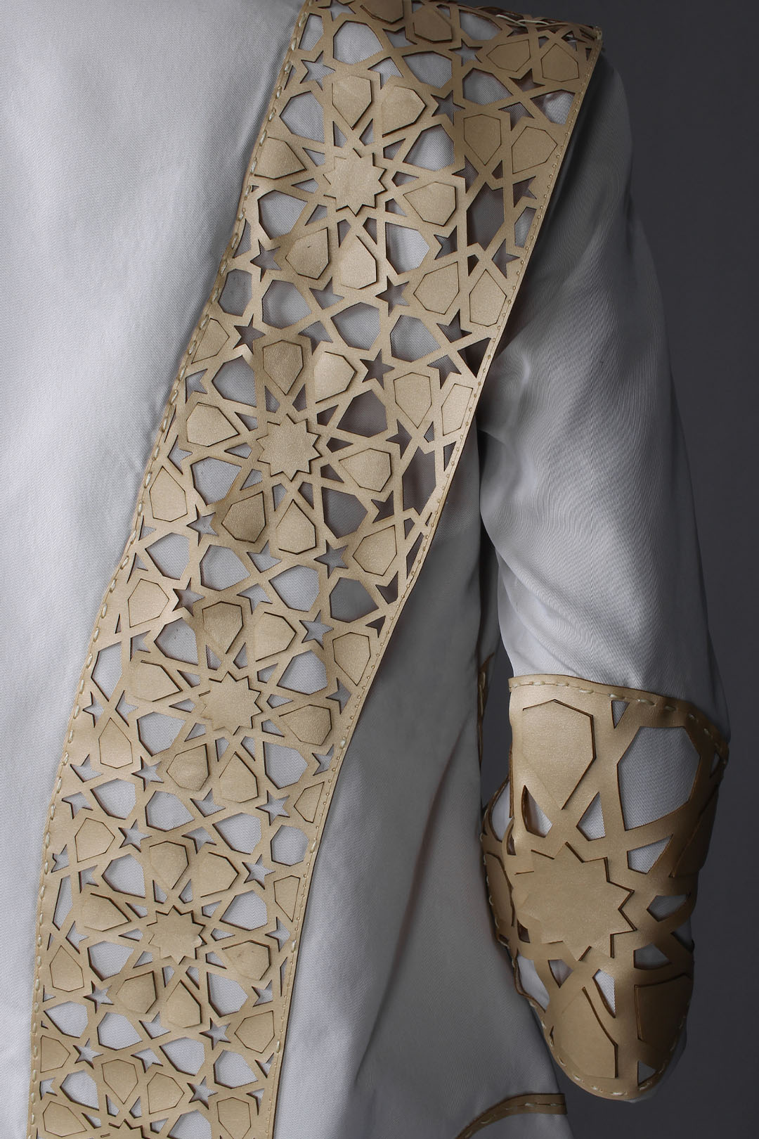 تزیینات باشکوه ایرانی پوششی است اصیل بر تن بانوی آینده، کاربردی بودن لباس اجتماع در عین حال چشم نواز بودن با سیلوییت متفاوت، از ویژگی های مدا ام بوده که در این اثر همواره مورد توجه قرار گرفته است. استفاده از رنگهای روشن و طلایی به عنوان نماینده روشنی و نورو امنیت زمین ،در جهان نمودار گشته است.